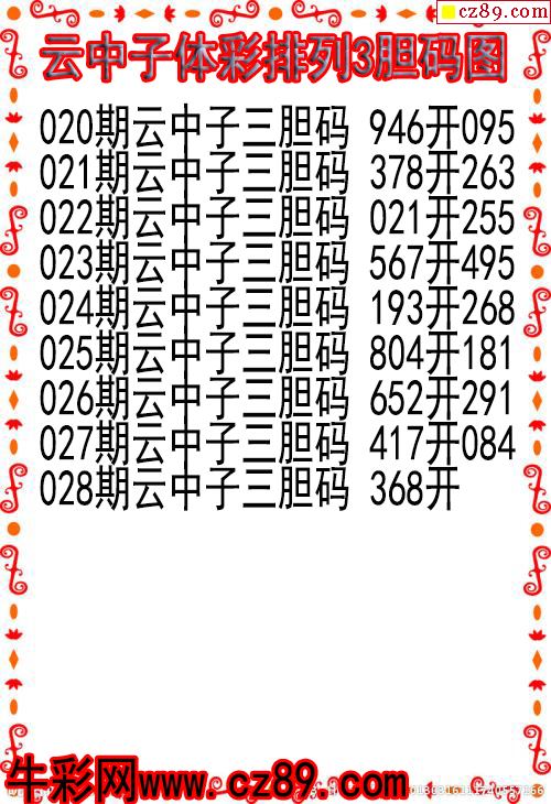 > 26年028期云中子体彩排列3胆码图