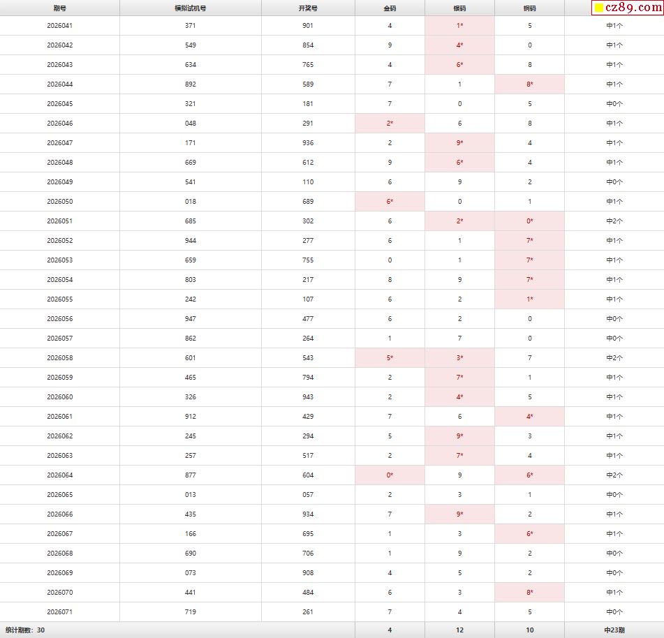 > 26年072期福彩3D彩神通关注码历史记录